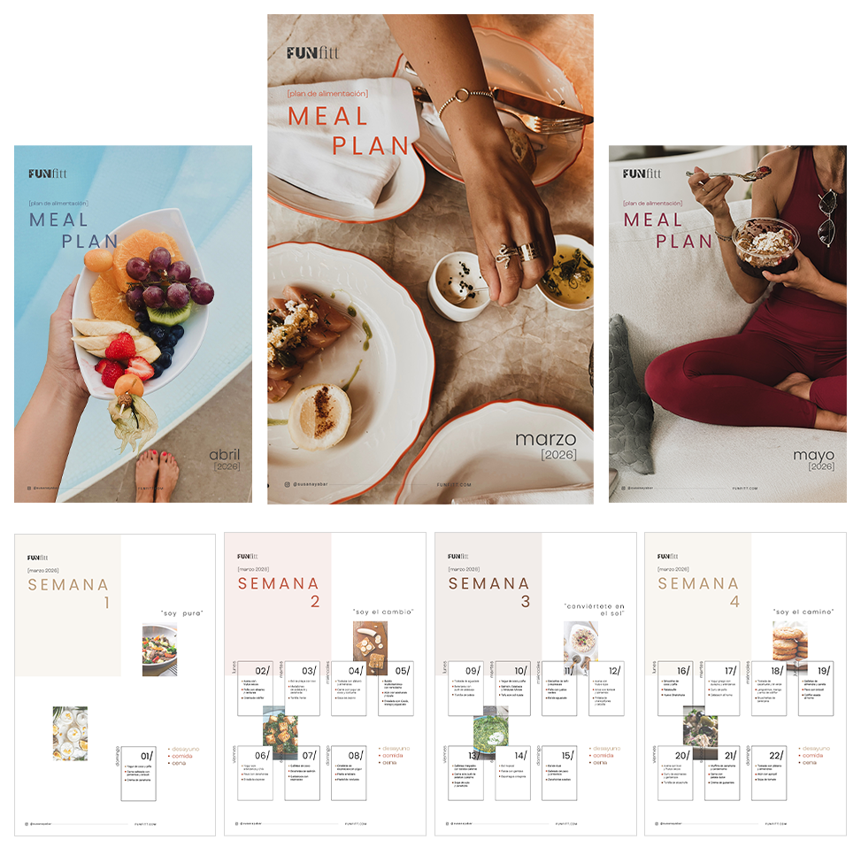 ¡El complemento perfecto para tu plan de entrenamiento mensual! Incluye recetas diarias de desayuno, comida y cena que no te llevarán mucho tiempo de preparación.