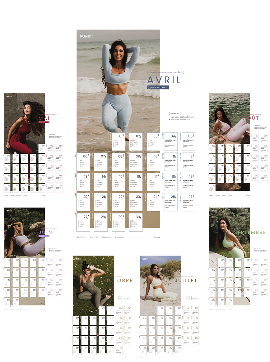 Ce prix comprend LES 12 calendriers d’entraînement de l’année entière, avec un nouveau calendrier chaque mois.